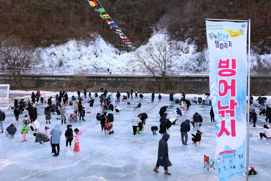 얼음낚시 외에도 다양한 겨울 체험 프로그램이 준비되어 있습니다. 눈썰매, 얼음썰매, 전통놀이 등 아이들과 함께 즐기기 좋은 활동들이 가득합니다. 또한, 지역 특산품 판매장에서는 안동의 다양한 농산물과 수제품을 구매할 수 있습니다. - 아름다운 암산 겨울 풍경
