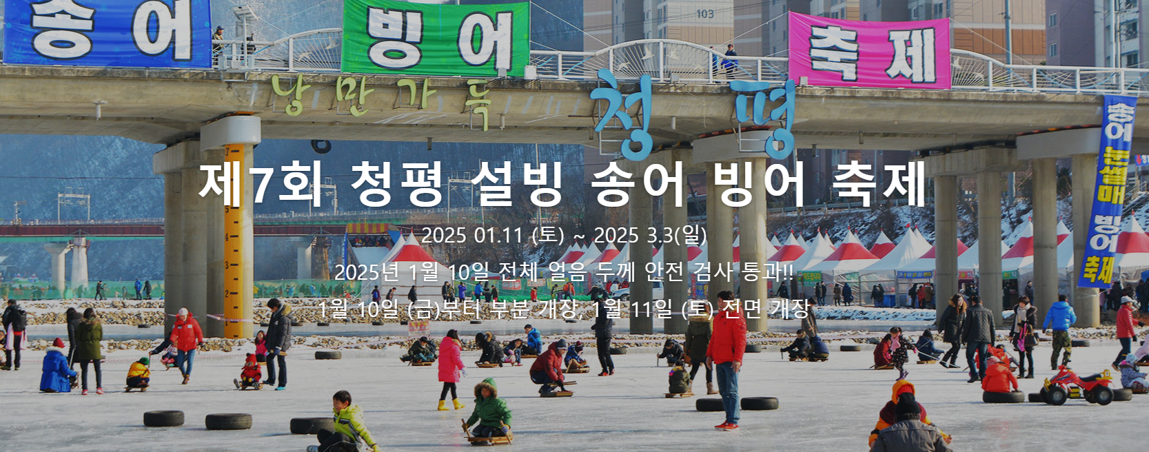 - 장소: 경기도 가평군 청평면 강변로 17 청평 강변로 설빙송어빙어축제장